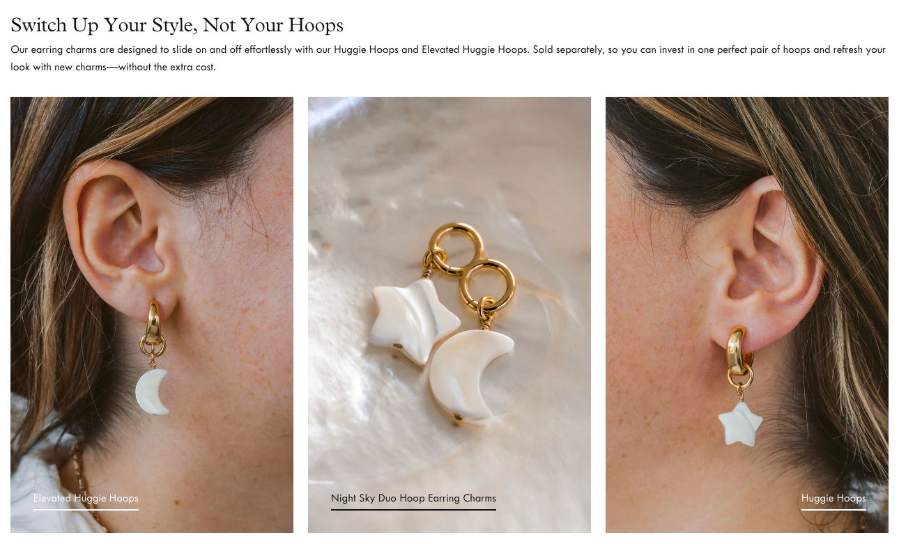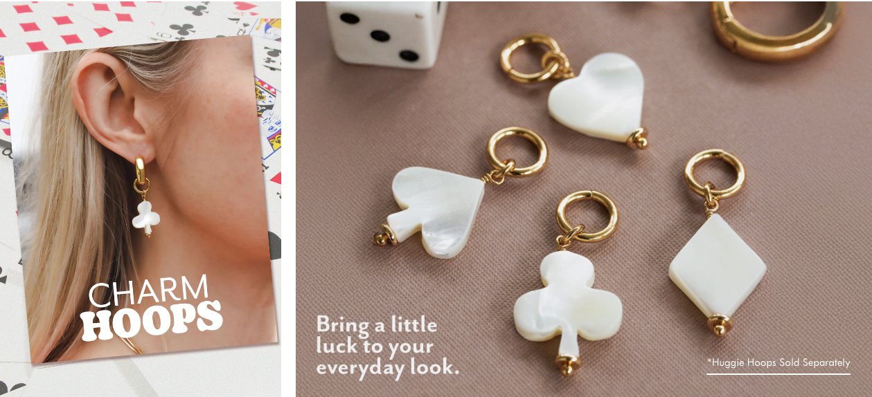 For this project, I developed a visual identity that reflects the playful modularity of the product. Mixing bold type with delicate details, warm neutrals with pops of candy color. From digital assets to packaging, each piece was designed to feel collectible, expressive, and effortlessly customizable — just like the hoops themselves.