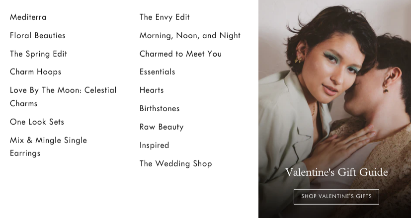 This seasonal campaign combined digital and print assets to create a Valentine’s experience across customer touchpoints. Online, marketing featured Valentine’s-specific highlights such as curated gift guides, trending heart-shaped styles, & matching “gal-entines” gifts. Mailing collateral extended the visual language offline, offering a tactile, keepsake-like experience with sweetheart gemstone heart “candy” stickers & a postcard featuring playful seasonal imagery.