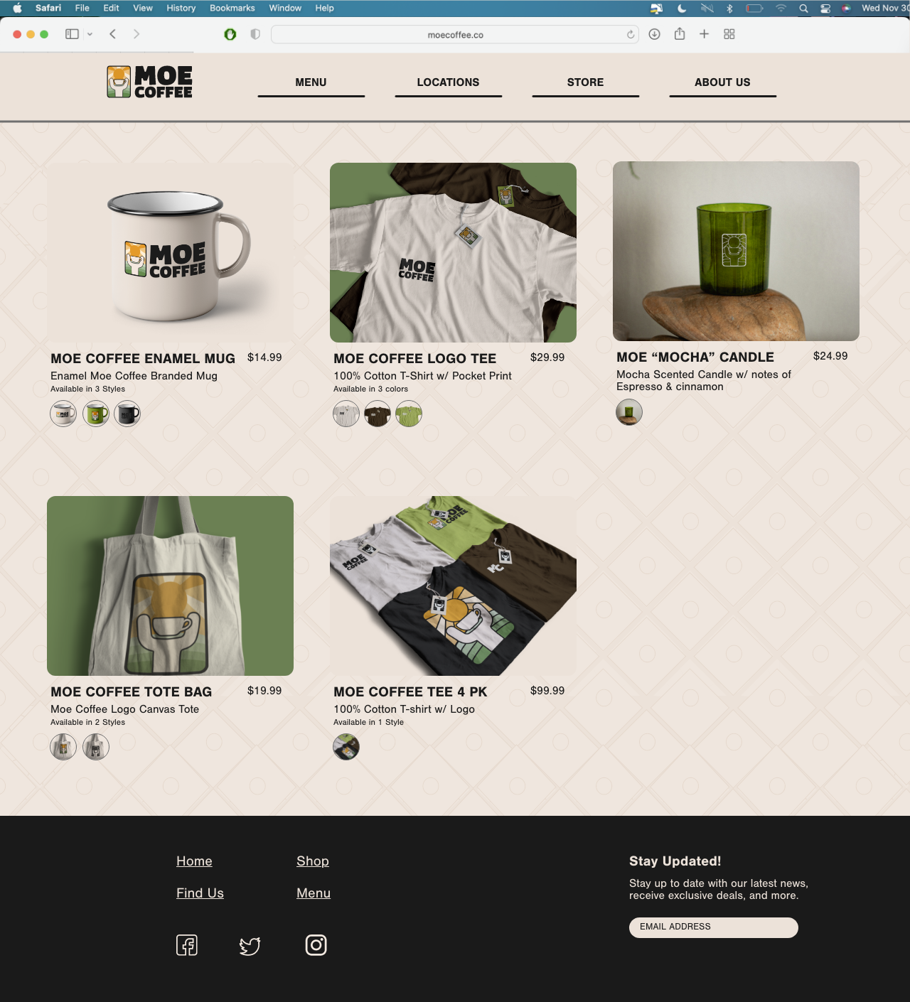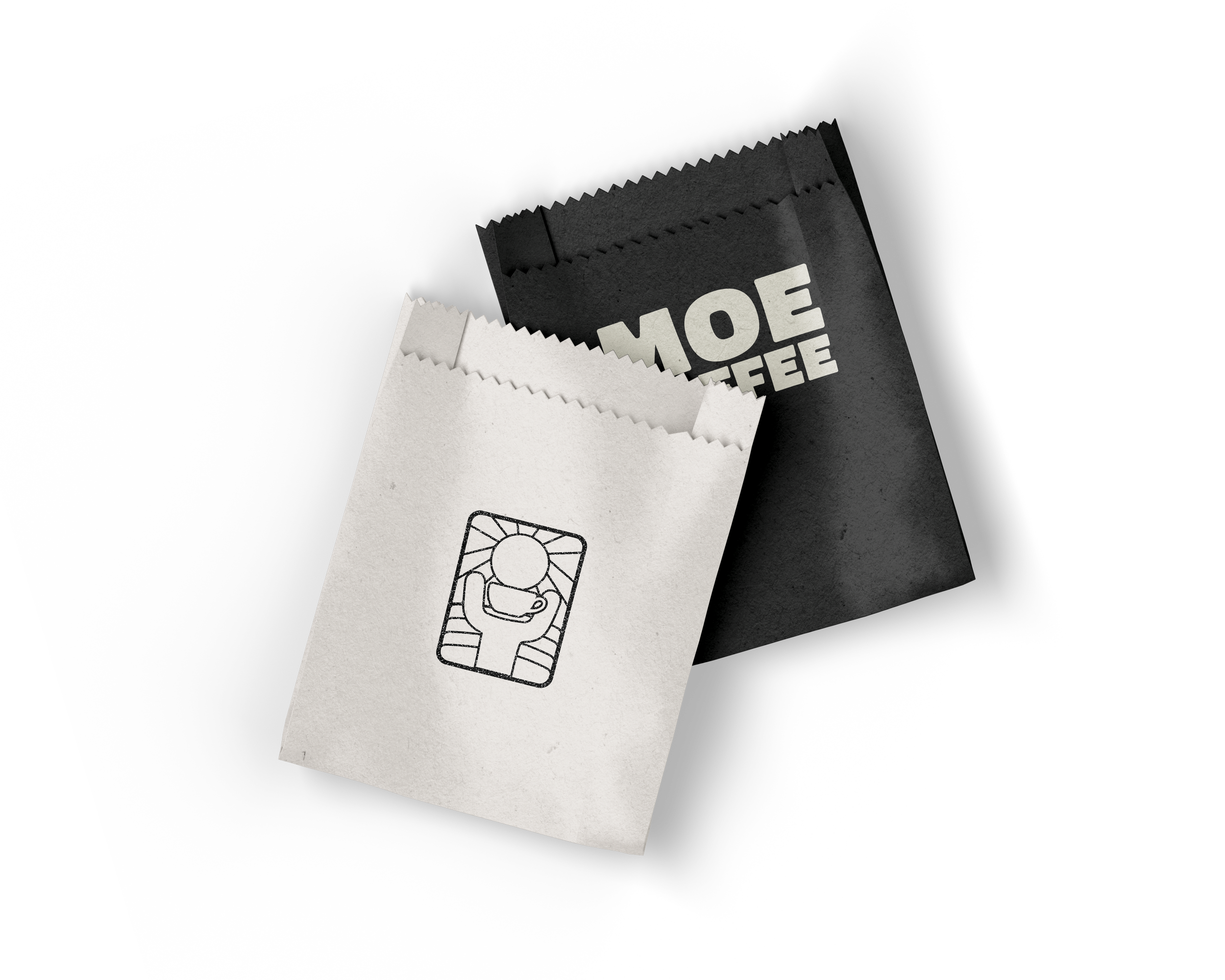 Tasked with rebranding a local business, I revamped my local coffee shop. Taking inspiration from the owner’s name, Moe (Mohammed), meaning praiseworthy, the logo mark is made up of the personification of Moe Coffee, praising the coffee gods in front of a stain-glass window.